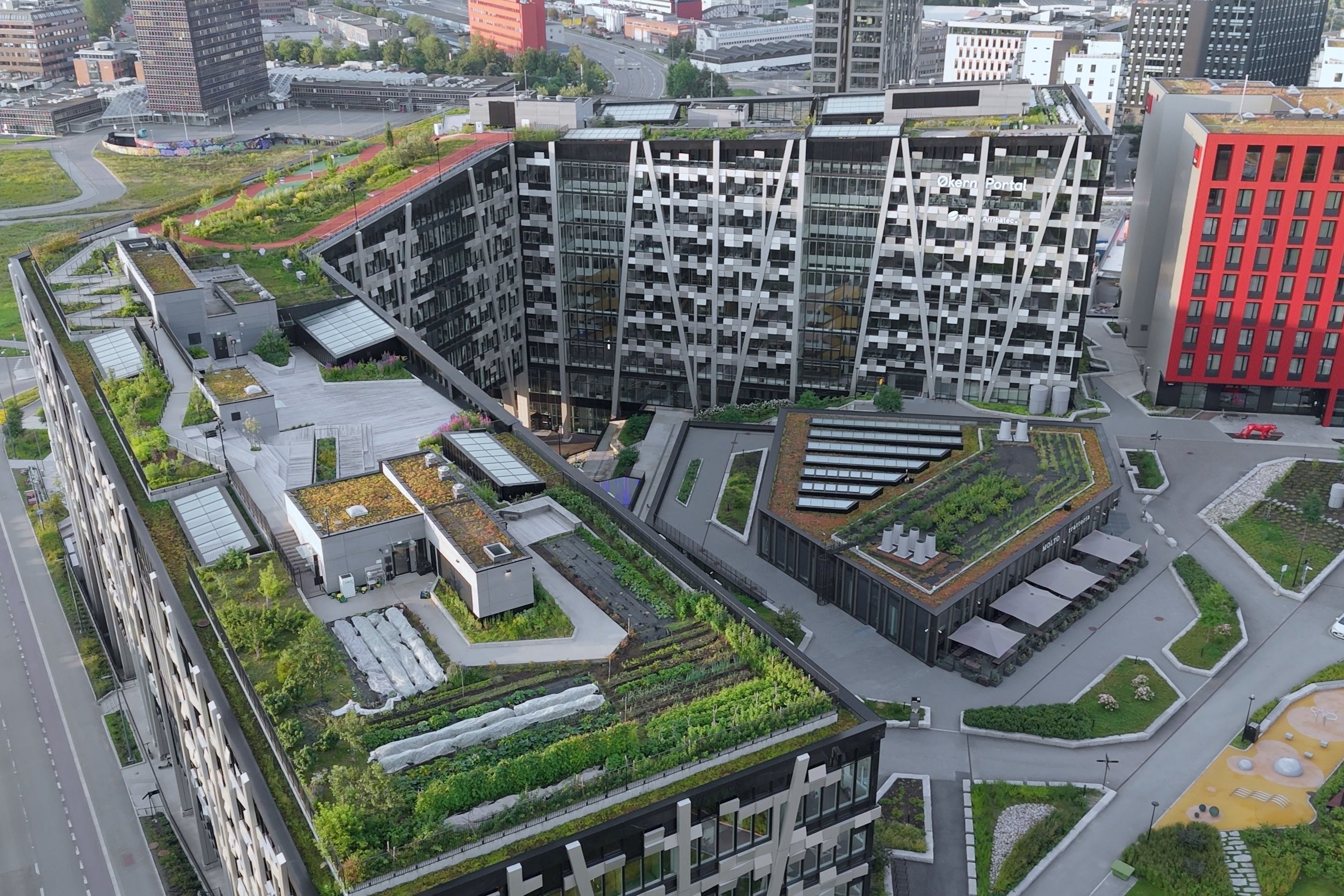 Økern Portal har Nord-Europas største, spiselige takhage med publikumsåpne terrasser, bikuber, et samdyrkelag og en markedshage hvor det dyrkes grønnsaker til spisestedene på bygget. Innendørs finnes det et stort dyrkerom med panoramavinduer som lar forbipasserende følge med på det som vokser. Det er bybøndene i U.Reist som står for dyrkingen, både ute og inne.